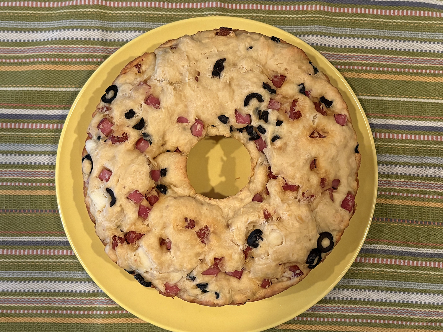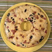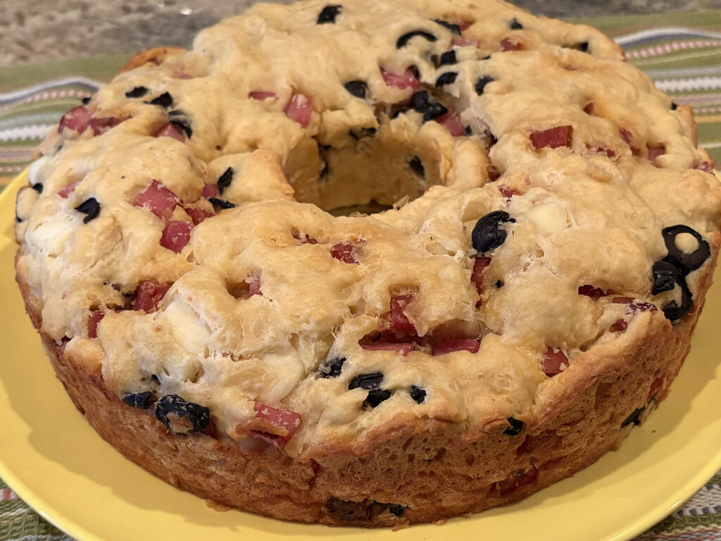 This year, I discovered an interesting variation called Ciambella Rustica, courtesy of Giovanni Siracusa. The concept and ingredients are basically the same, with the addition of flour and olive oil, which transforms it into more of a bread or savory cake. It can be baked in either a tube pan or a Bundt pan (cue My Big Fat Greek Wedding). I was intrigued and decided this was the recipe I would follow this year.